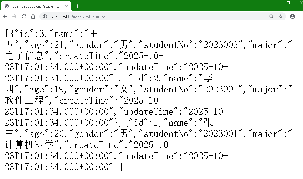 我们把刚才创建的学生删除,然后查询所有学生看一下是否都删除了