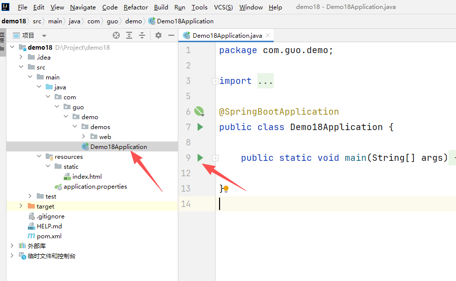 构建完毕后,找到启动类,点击启动,就可以看到给定的默认的项目启动了