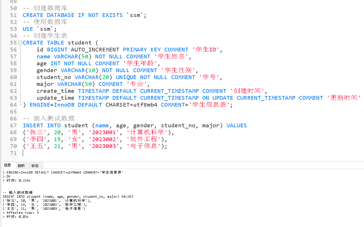 为什么参数是这样,因为根据设计的SQL,id是自增的,create_time和update_time也是数据库自己写的,此处没有必要传入。