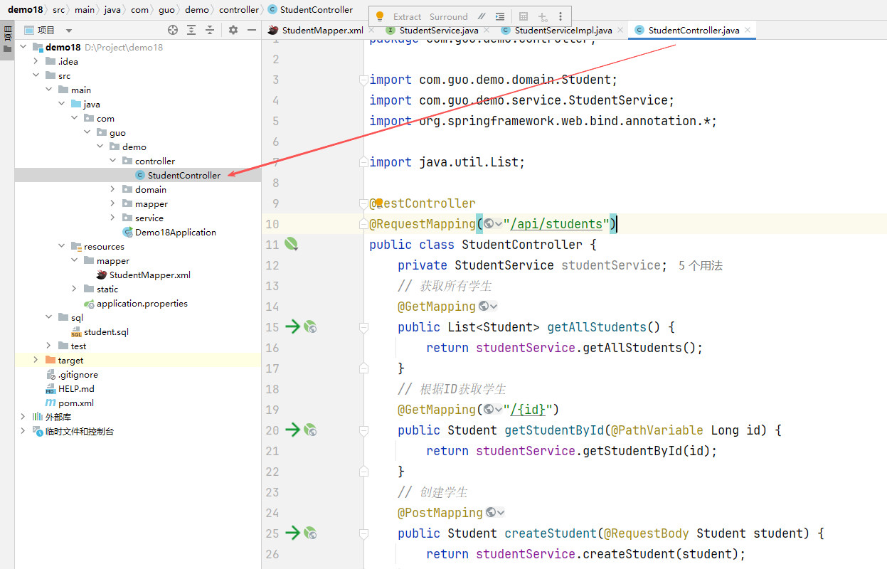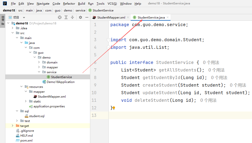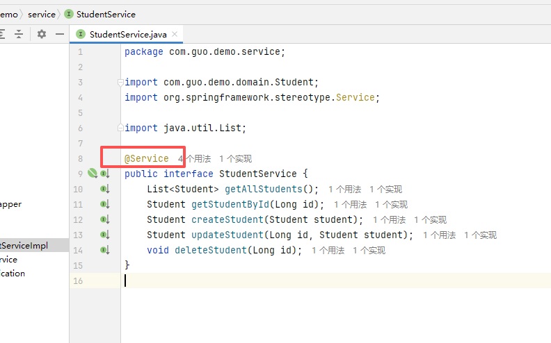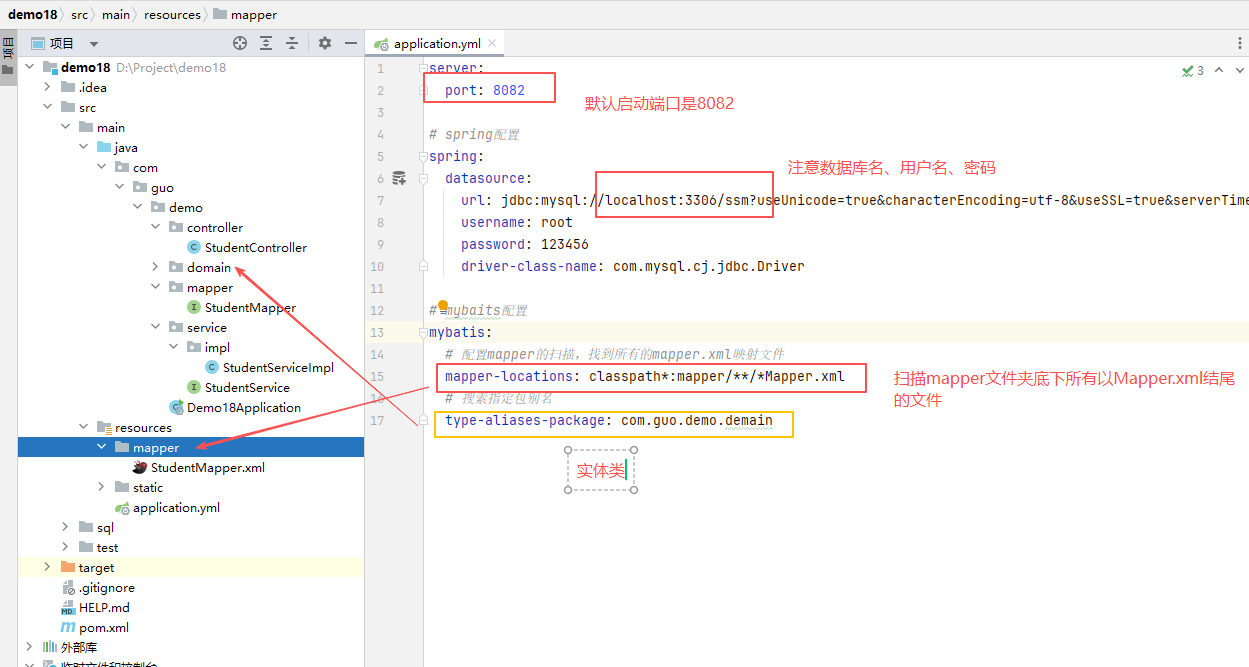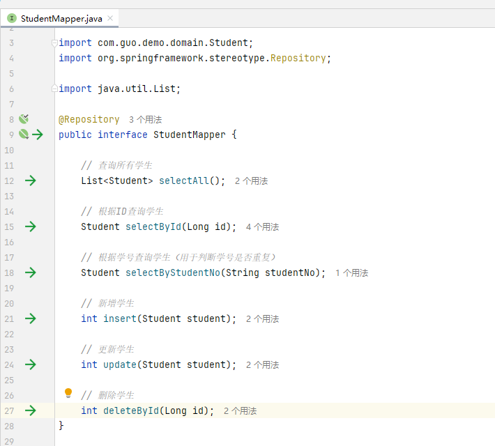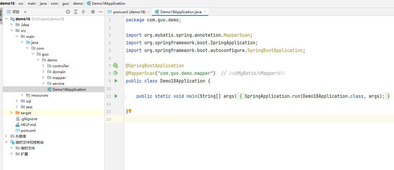 @MapperScan("com.guo.demo.mapper") // 扫描MyBatis的Mapper接口