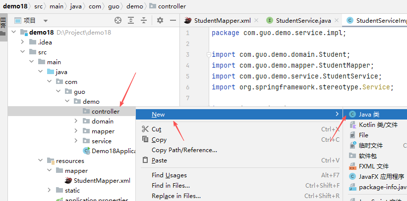 创建完了后,继续右击controller文件夹,选择New—>Java类
