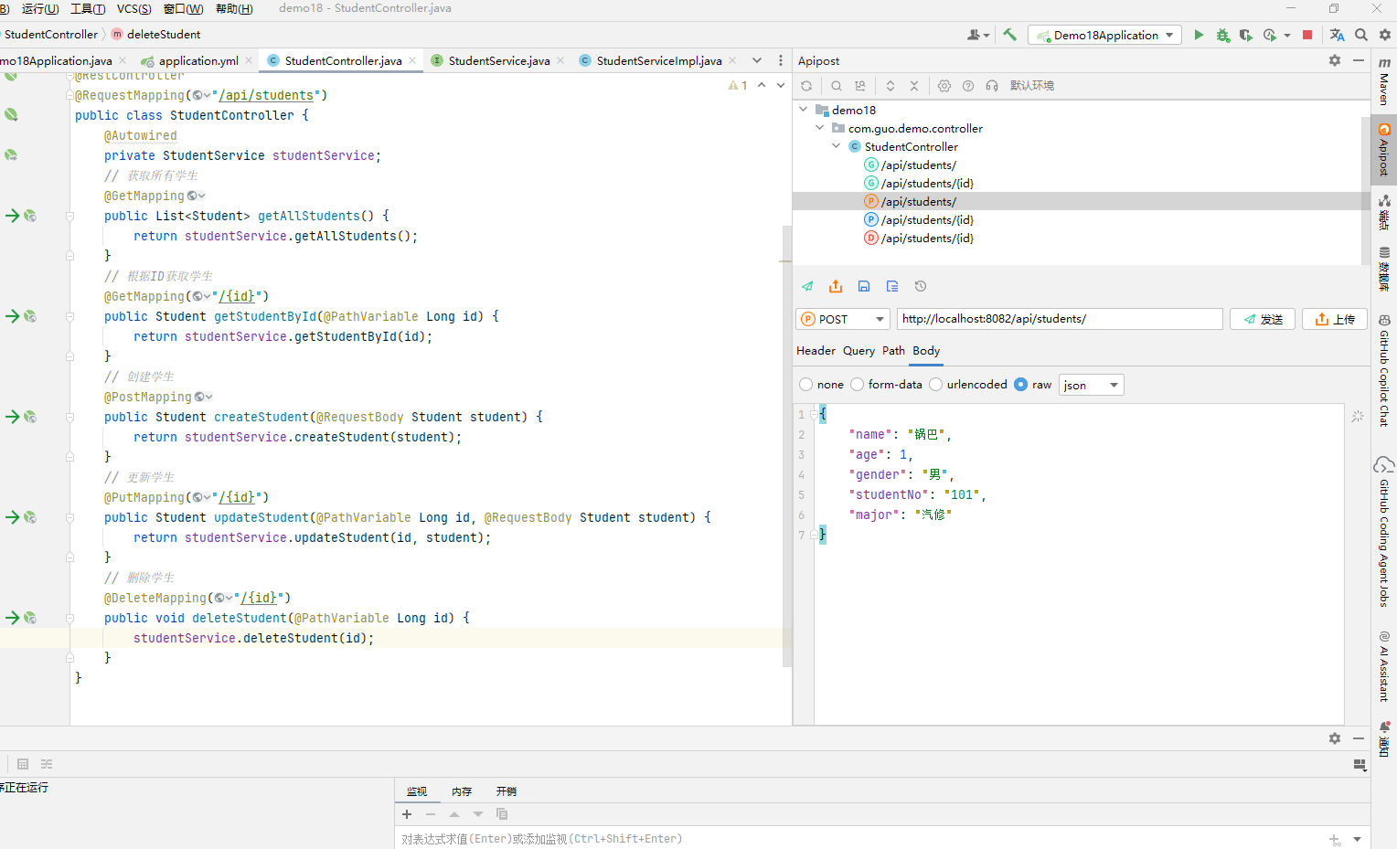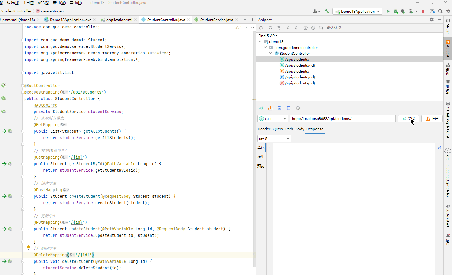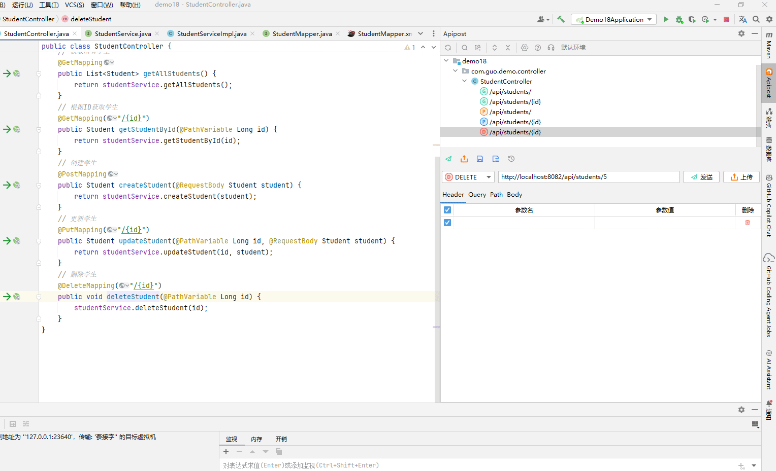 我们把刚才创建的学生删除,然后查询所有学生看一下是否都删除了