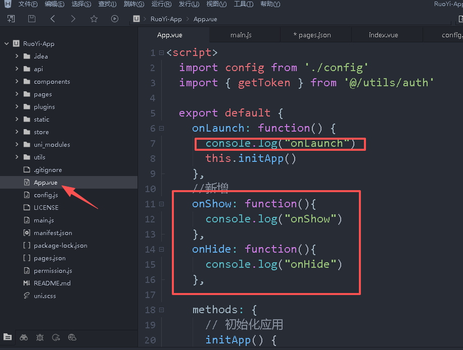若依App版是基于uniapp的,在 UniApp 中,生命周期分为 应用生命周期页面生命周期组件生命周期